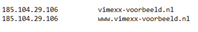 Kijk hier vervolgens naar regels waar onder Name jouw domeinnaam, mail, ftp of www staat. Let erop dat de regel onder “Type” A aangeeft. Er komen ook regels voor met AAAA, maar die hebben we in dit geval niet nodig. Het IP adres vindt je vervolgens onder “Select”. Dit IP adres gebruik je in de regels die je toevoegt aan jouw hosts-bestand.