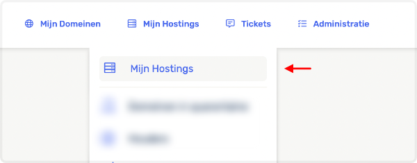Hiervoor ga je binnen het klanten paneel via het menu bovenin naar Mijn Hostings en selecteer je het juiste hostingpakket aan de linkerkant. Als je het nieuwe hostingpakket hebt aangeklikt, zie je aan de rechterkant Verhuisservice verhuizing aanvragen staan, klik hier op.
